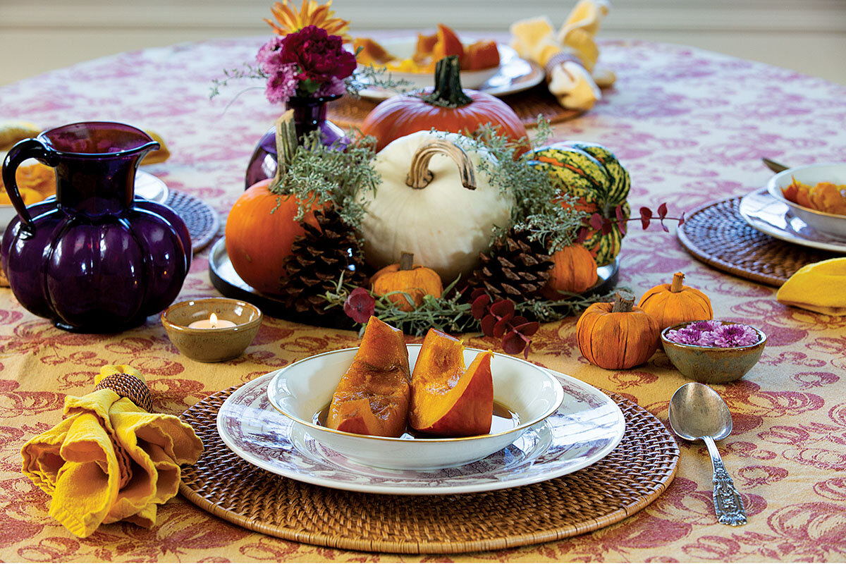 “What we are showing on the tables is something called stewed pompion, which is first written down in 1672 by John Josselyn,” says Ms. Rudder, who keeps a binder full of historic pumpkin references. “He calls stewed pompion ‘the ancient New England standing dish,’ ... [meaning it’s] something that’s on the table all the time.”