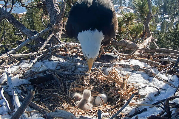 Hatched! Baby eagles send spirits soaring for webcam viewers.After a long, painful wait, and just a year after no eaglets ever appeared ... two eaglets have hatched!