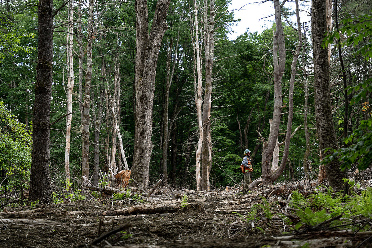 “It’s as messy as we can make it,” says Alex Barrett, a Vermont forester standing in a timber-strewn patch cut not far from the Connecticut River.