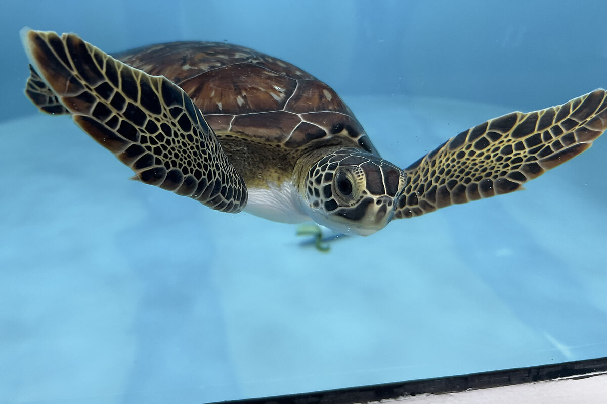 “I think it’s been quite a wild ride for this turtle,” says Lindsey Waxman, staff veterinarian at The Florida Aquarium. “Starting out in the wild, riding through a hurricane, stranding in a ditch, and then getting rescued by Clearwater Marine Aquarium … and then to come here just in time to start rehab, start diagnostics and treatment, and then just get packed up again.”