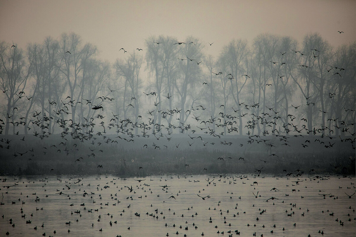 Winter skies can be gray and bleak. But in the Kashmir Valley, flocks of migrating birds brought cheer to this wetland reserve.