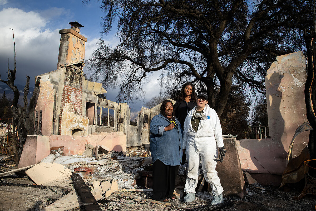 Ms. Moore; her partner, Lorna Green; their 16-year-old daughter, Umalali; and their two dogs are among the thousands of Southern California families whose lives were upended by devastating wildfires this January. The Eaton wildfire, one of two that engulfed neighborhoods in Greater Los Angeles, tore through their beloved 808-square-foot house on Olive Avenue, leaving rubble and a charred oak tree in its wake. Hurricane-level winds carried embers into their Altadena community, burning block after block after block. Seventeen people died in that fire, and officials estimate the blaze destroyed more than 9,400 structures.