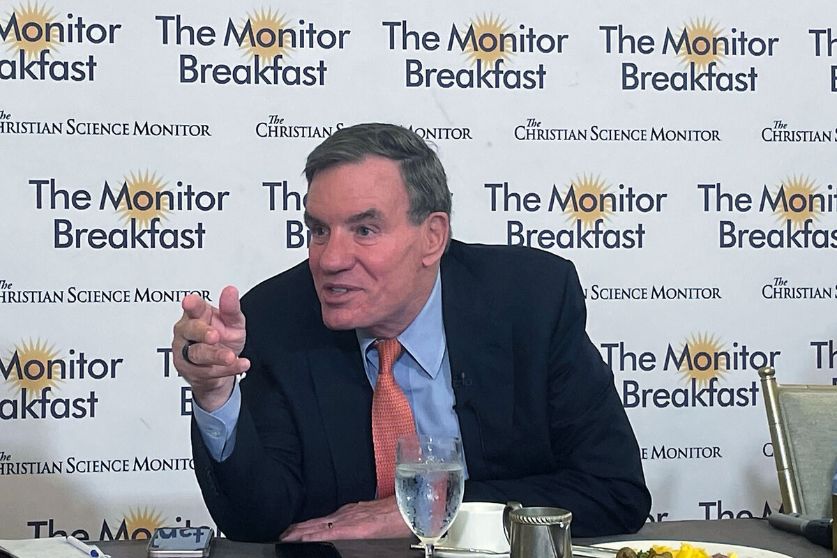 At a Monitor Breakfast, Sen. Mark Warner of Virginia talked about efforts to safeguard U.S. elections from false information, and about countering national security threats from the southern border to TikTok.