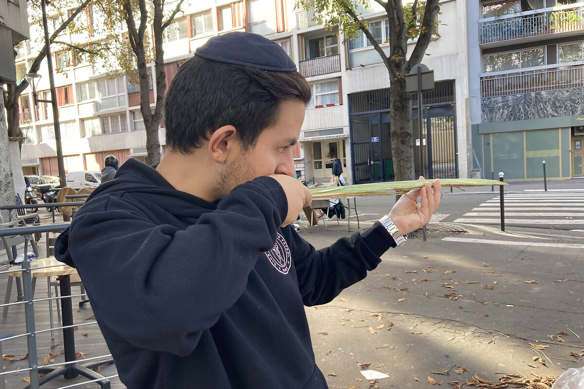 “I was educated from a young age that we should all be able to live together, that there are good people and bad. Why should I be scared?” says David Benchetrit, an etrog seller, holding out a fruit to a prospective client. “But there’s definitely a feeling of safety in numbers.”