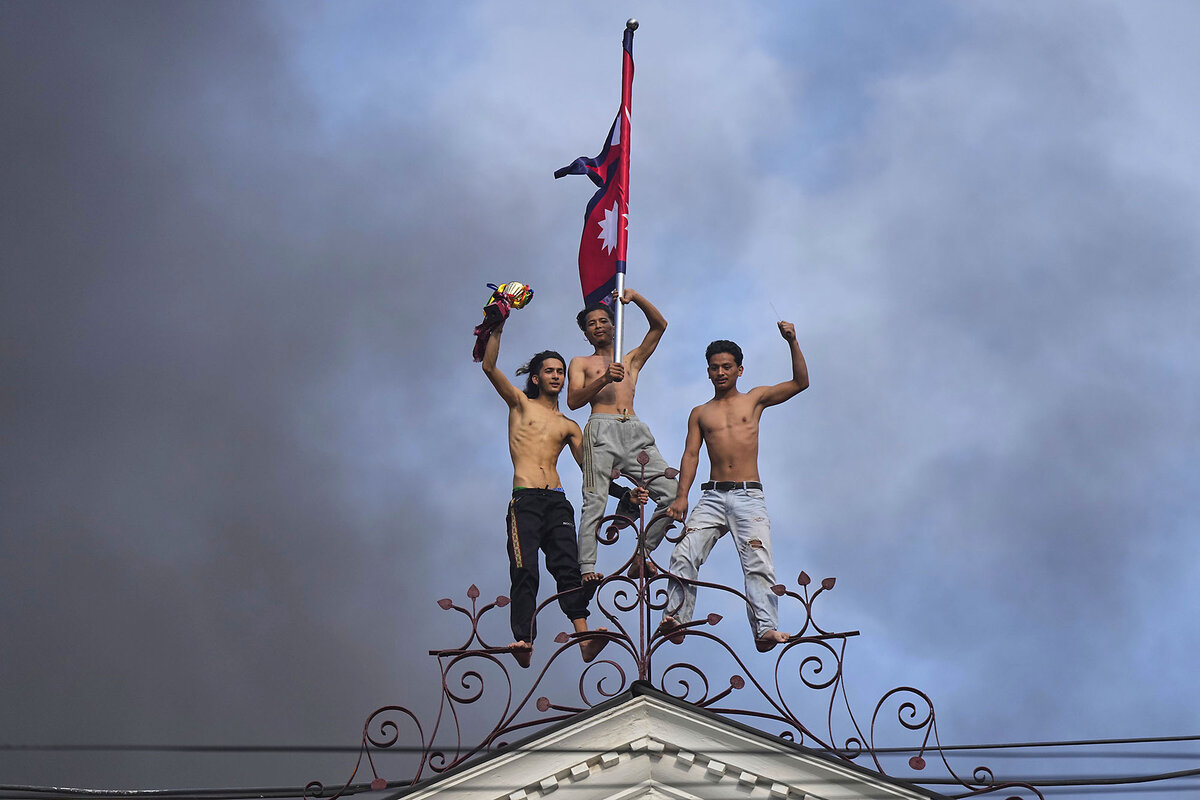 Government ministries were burned to the ground across the Nepali capital, Kathmandu. Sushila Karki, a former chief justice, was appointed as prime minister. (She had landed as the first choice among users of a poll on Discord, an online communications platform initially designed as a gamers’ tool.) Ms. Karki will hold the position until the March elections. She is seen by the Nepalese people as largely uncorrupted, observers say – a win for the youth-led movement.