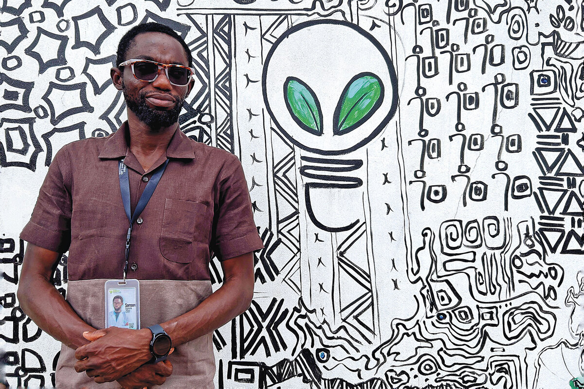 Outside the lecture hall, Mr. Ogbole stops to greet a group of trainees. Smiles spread across their tired faces, and a few step forward, eager to have a conversation. Mr. Ogbole does not hesitate.