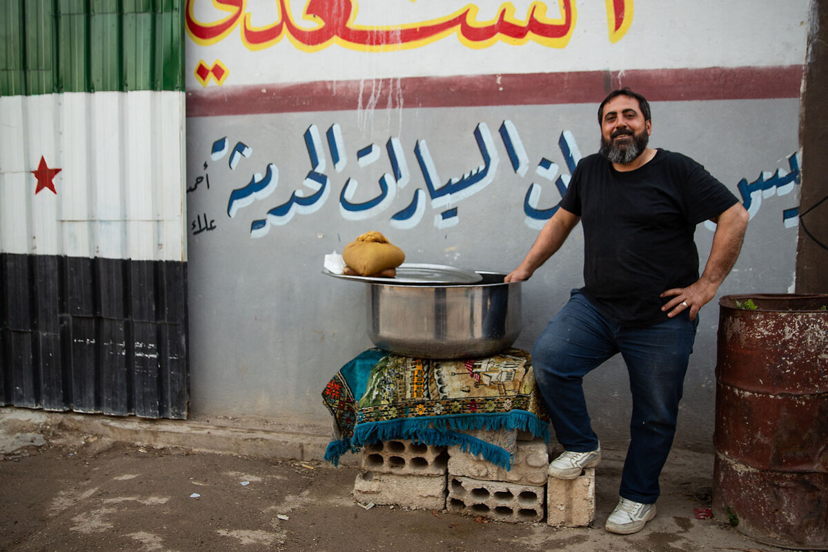 “This Ramadan, our loved ones have returned,” says Mr. Saadi, fielding greetings outside his car-painting workshop. “We are reunited. Friends, loved ones, and young men are all back. Things will gradually improve.”