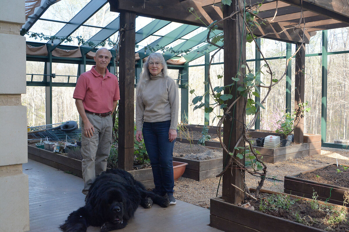 In 2016, after traveling the world as a U.S. Army doctor, Mr. Janusziewicz moved with his wife, Michelle de Stefano, to Keswick, and built their home at the foot of the Blue Ridge Mountains. One weeknight in his home, half a dozen neighbors gather to talk and graze overstuffed platters prepared by Ms. de Stefano: pastry-wrapped sausages, stuffed peppers, and grapefruit-rosemary water flavored with herbs that Ms. de Sefano grows in her greenhouse.